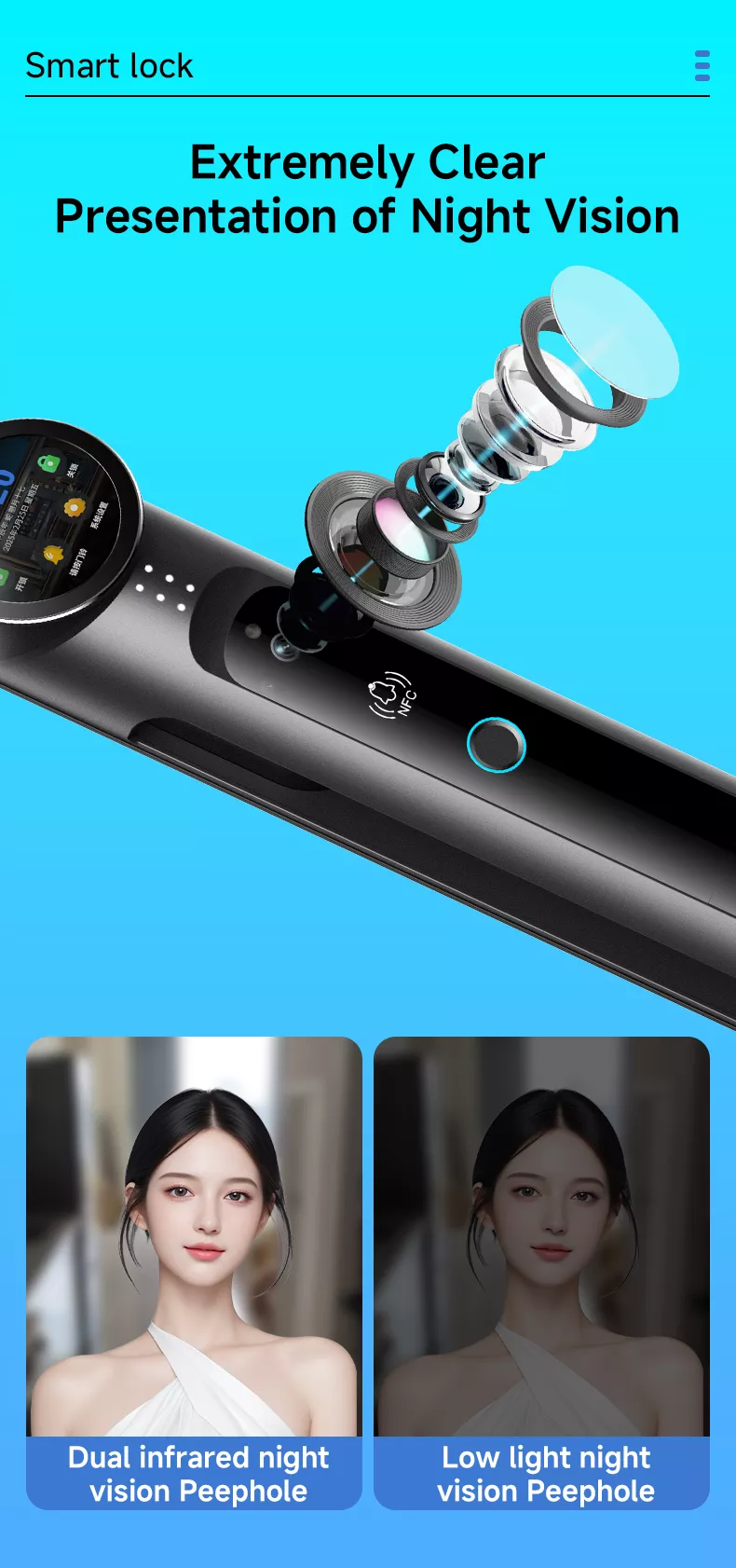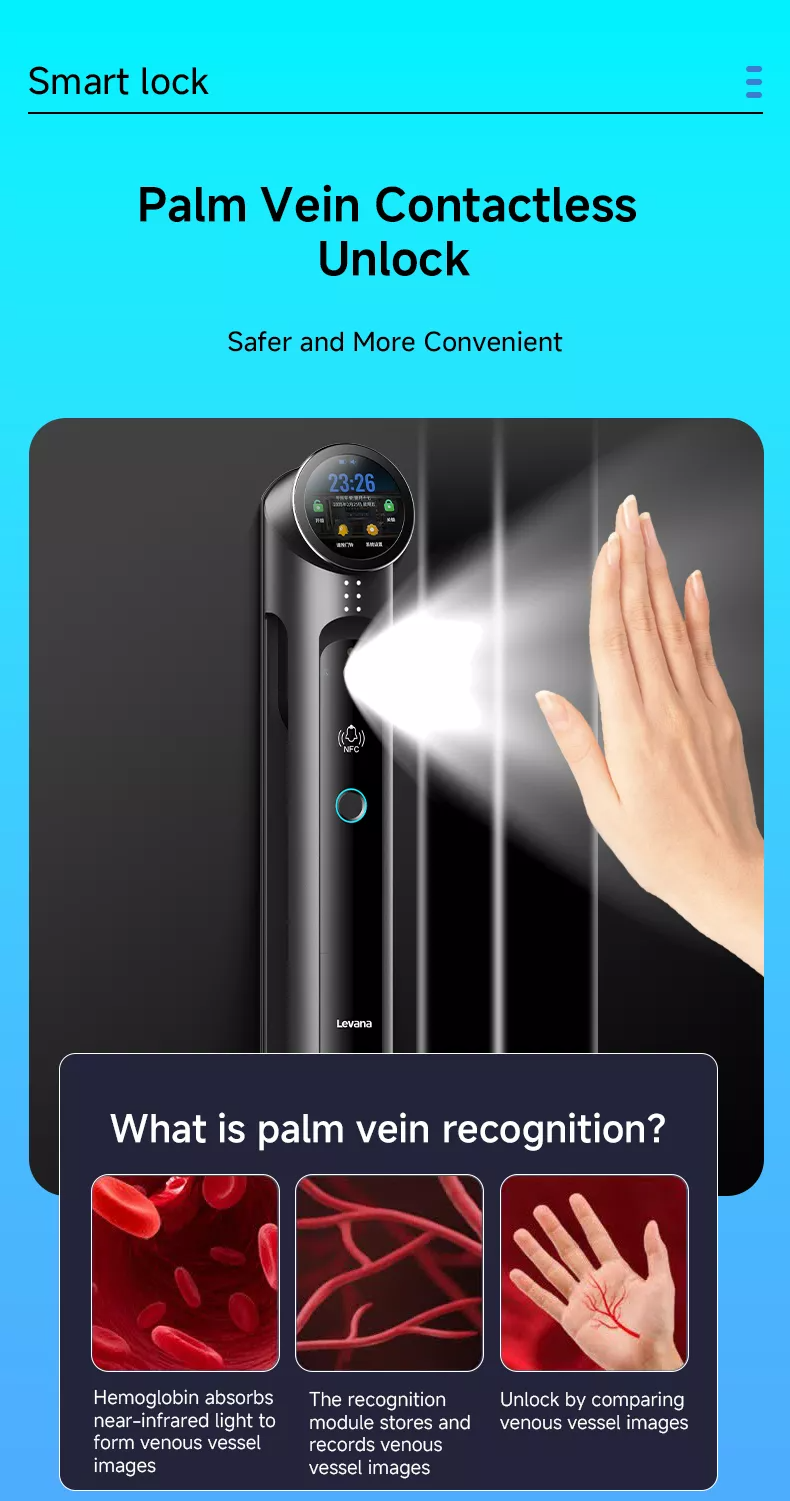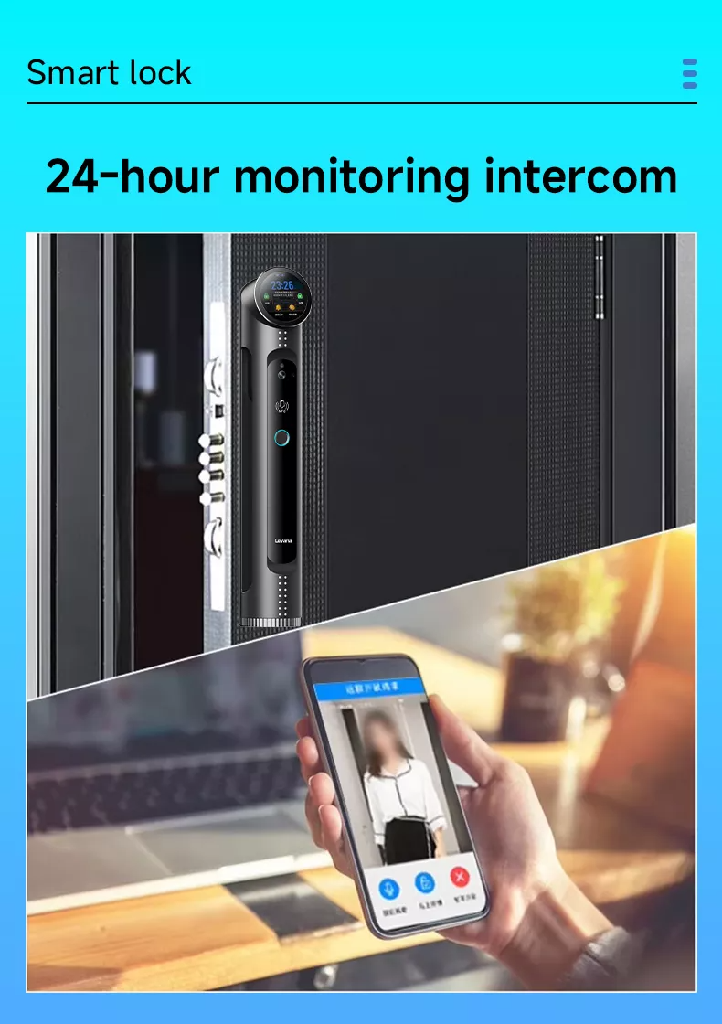 | Unlocking method | Tuya app, Face, Palm vein, Fingerprint, Password, RFID Card, Key, Temporary password, Remote control(optional) |