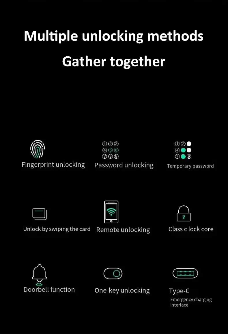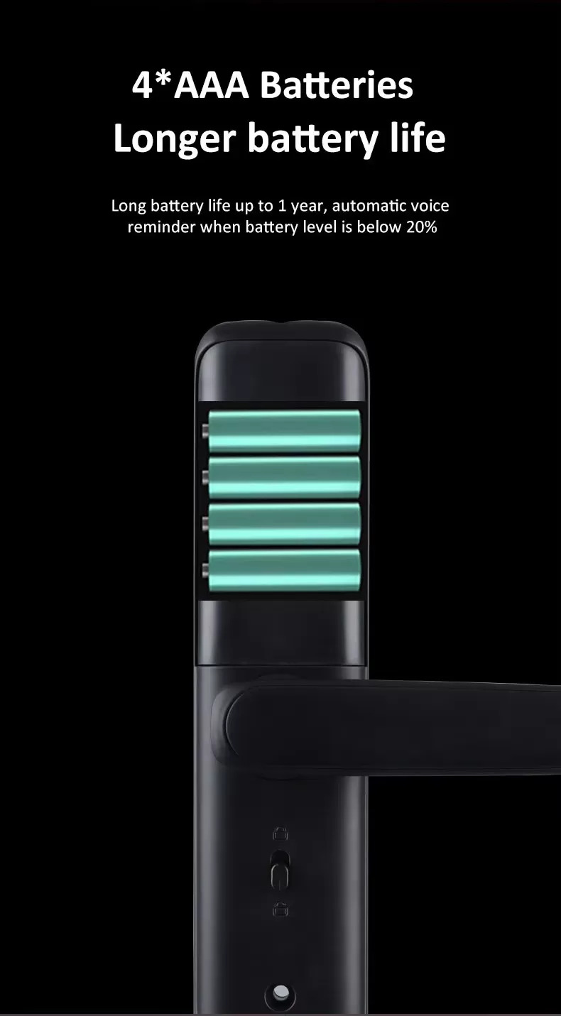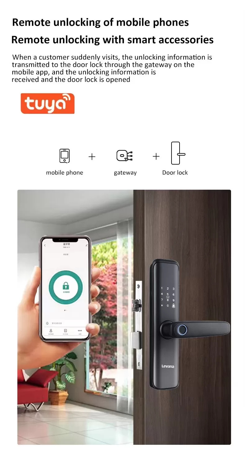 | Unlocking method | Tuya app, Fingerprint, Password, RFID Card, Key, Temporary password, Remote control(optional) |