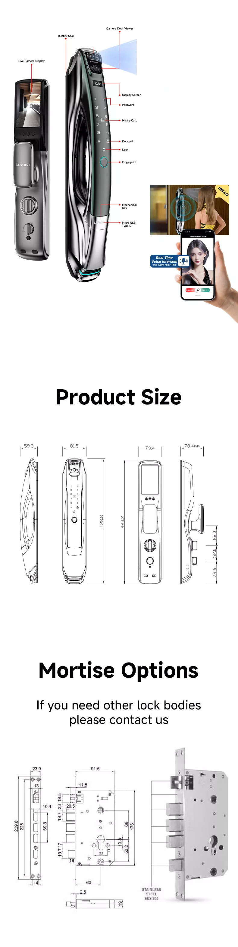 | Unlocking method | Tuya app, Fingerprint, Password, RFID Card, Key, Temporary password, Remote control(optional) |